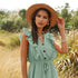 Plongez dans un univers bohème avec notre robe vert d'eau, illuminée de petites fleurs blanches. Un design qui respire la fraîcheur du printemps et vous enveloppe de légèreté.