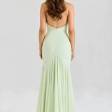 Robe longue vert d’eau fluide – Glamour irrésistible & silhouette sculptée